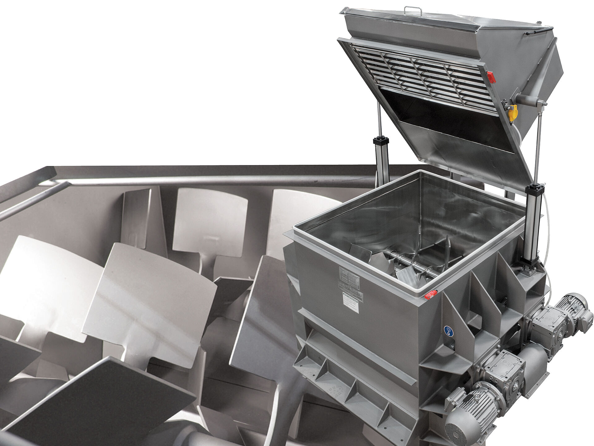 The mixers consist of twin shaft, overlapping or tangential paddle assemblies which are counter rotating at comparatively low rotor speeds drawing material from each rotor drum and lifting the ingredients up and between the rotors. This creates a mechanical fluidized zone where particles can freely transpose, thereby eliminating segregation.